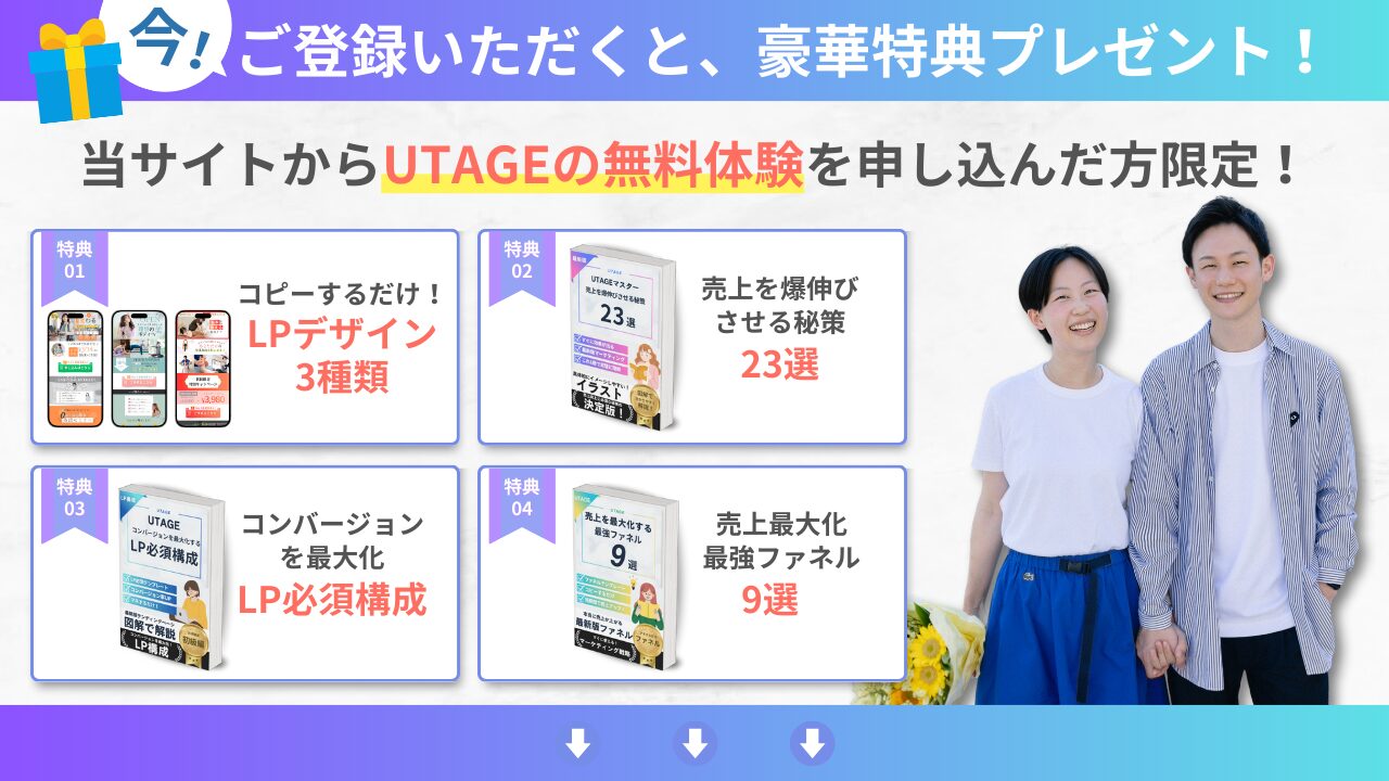 UTAGEで皆さんのビジネスを短期間で成長させましょう!