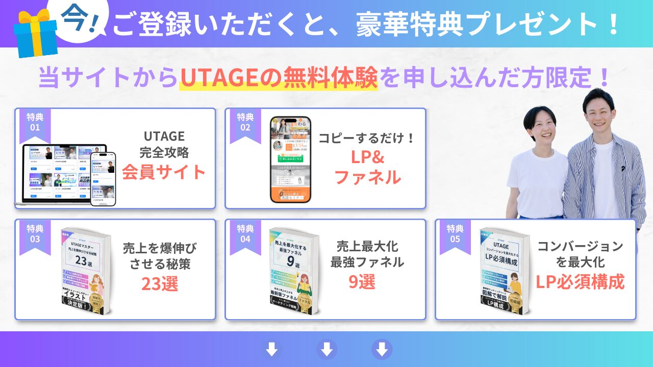 🎁【当サイト限定】UTAGE無料体験申込で受け取れる5つの豪華特典