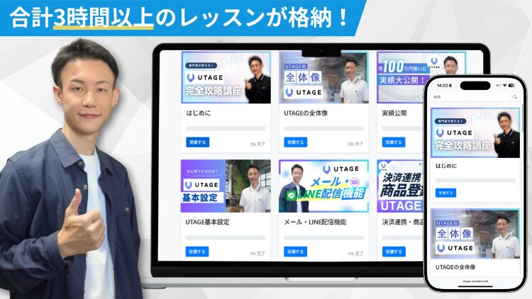 UTAGEをゼロから徹底的に学べるので、もう“どこから始めればいいか分からない”と悩む必要はありません。